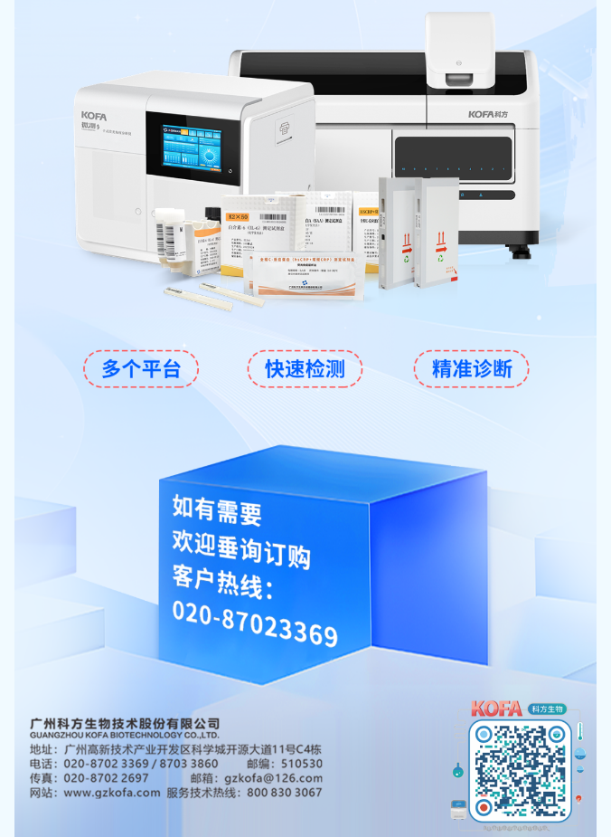 廣州科方生物技術股份有限公司始創(chuàng)于2004年,總部位于廣州中新知識城,是一家專注于體外診斷試劑及儀器(IVD)研發(fā)、制造、銷售和服務的國家高新技術企業(yè)。公司始終堅持自主知識產權、自主創(chuàng)新、自主品牌戰(zhàn)略,建立了生化免疫流水線平臺、化學發(fā)光檢測平臺、熒光免疫層析平臺、生化診斷技術平臺。獲注冊證200余項,檢測系列涵蓋肝腎功能、心血管疾病、血脂、糖尿病、遺傳病、腫瘤、甲功等多個領域,廣泛應用于全國各級醫(yī)療機構、第三方檢驗中心。